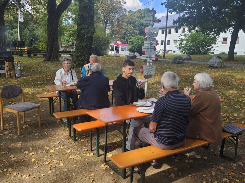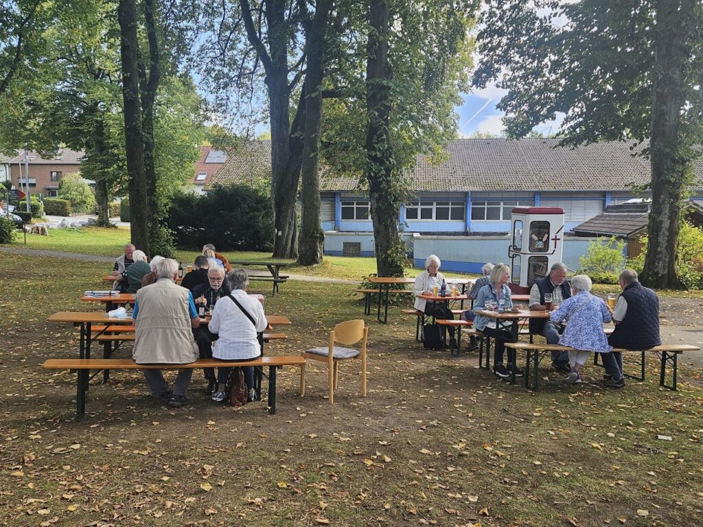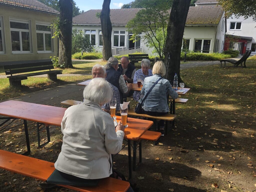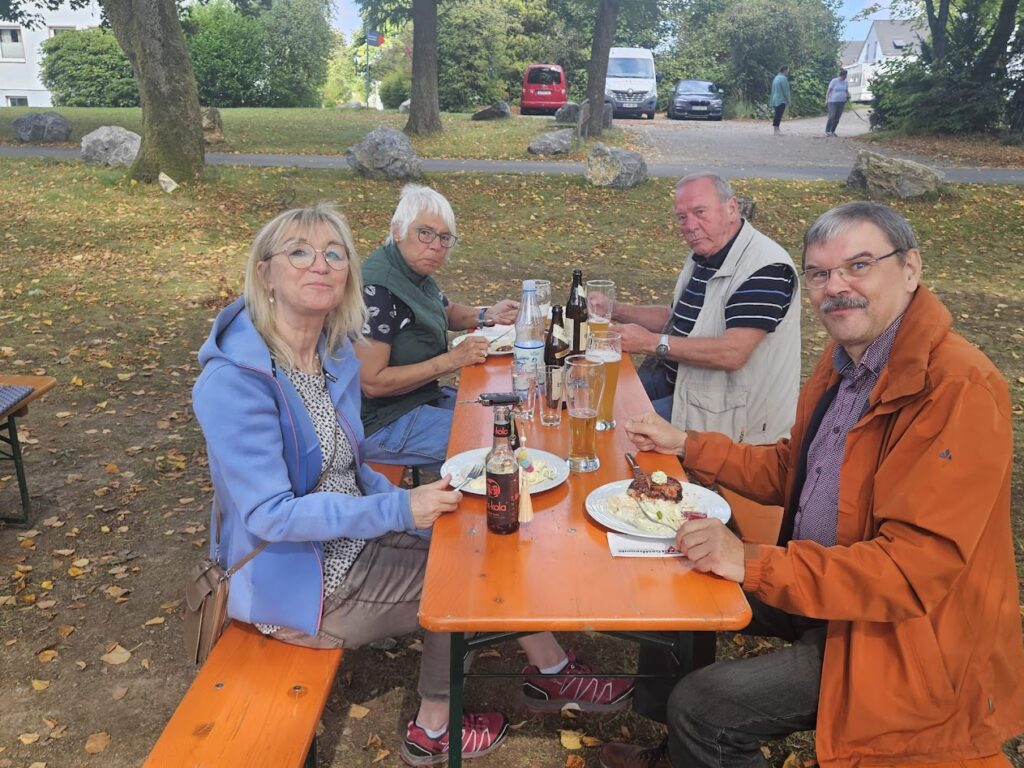 Hierzu hatte sich dankenswerterweise ‚Jogi‘ zuvor bereiterklärt, den Grill zu bedienen, wobei Klaus W. ihn tatkräftig unterstützt hat. Nachdem das Grillgut gar war, trafen auch alsbald die Mopedfahrer ein, so dass man zum gemütlichen Teil übergehen konnte. Daran konnten sich auch diejenigen beteiligen, die aus unterschiedlichen Gründen weder an der Mopedtour noch am Spaziergang teilnehmen konnten.