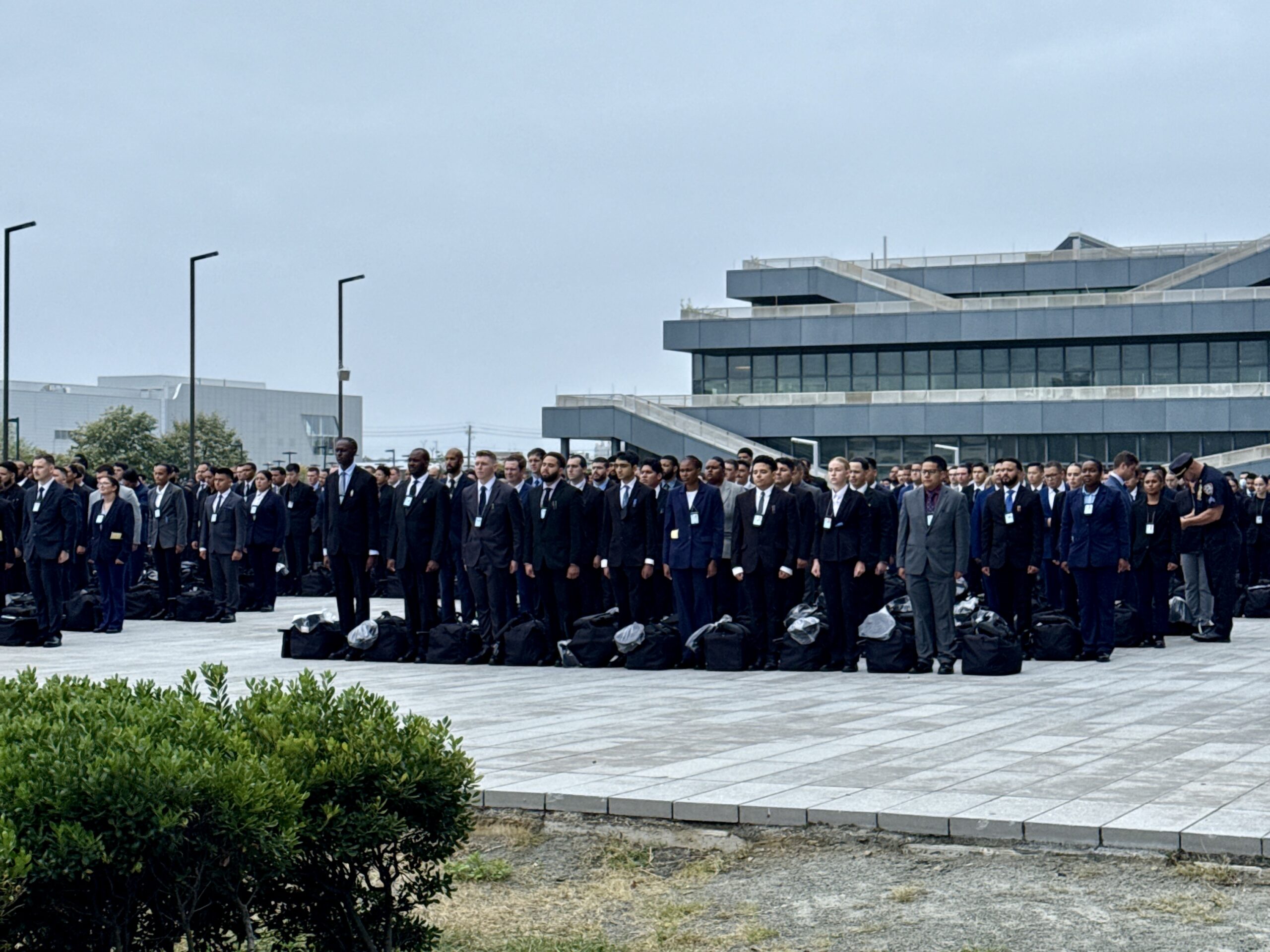 Ein besonderes Erlebnis war das Antreten auf dem Paradeplatz: Rund 500 Auszubildende, viele noch im ersten Monat ohne Uniform, wurden vom Leiter – einem typischen „Drill Instructor“ – lautstark begrüßt und erwiderten dies ebenso kraftvoll. Befehle, Übungen und Liegestütze gehörten zum Programm. Erst nach einem Monat erhalten die Anwärter ihre graue Uniform, die blaue des Einzeldienstes muss man sich erst verdienen.