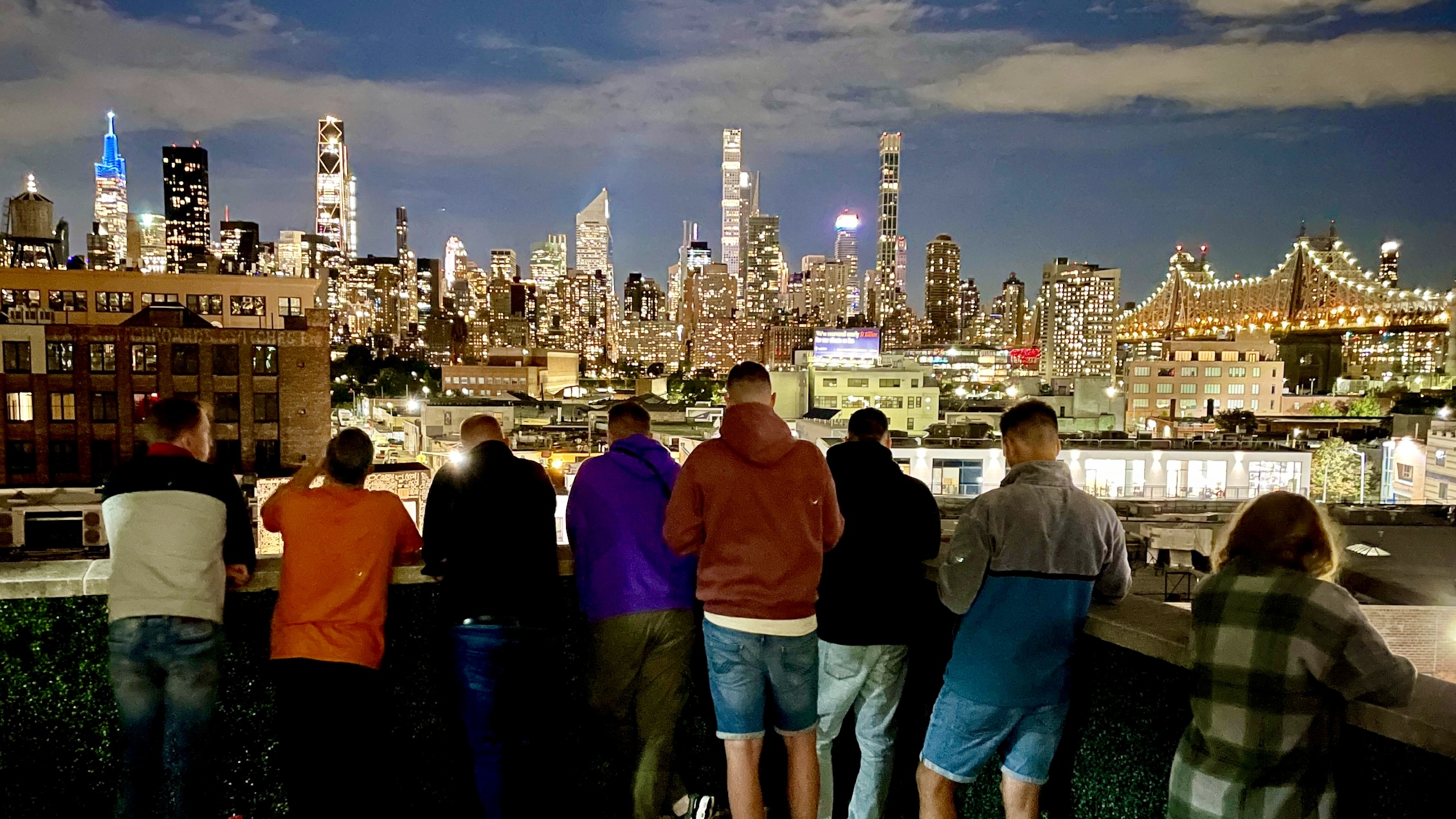 Einige aus der Gruppe setzten das Beisammensein anschließend auf der Dachterrasse unseres Hotels fort – mit einem letzten Blick auf die funkelnde Skyline von New York City.