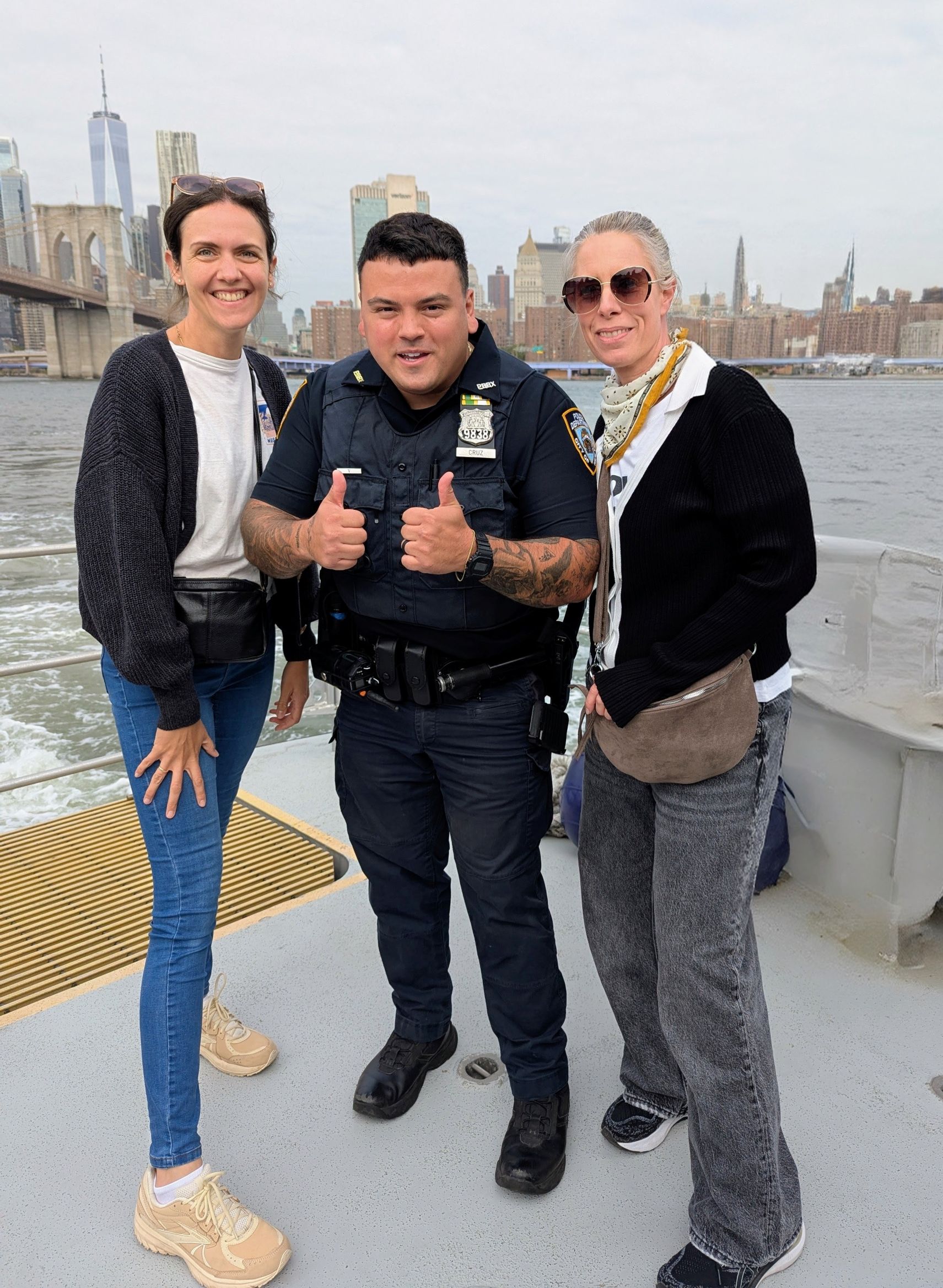 Am Montag folgte ein weiterer Stadtrundgang, bevor wir noch ein besonderes Highlight erleben durften: eine Fahrt mit einem Schiff der NYPD. Dabei bot sich uns ein beeindruckender Blick auf die Brooklyn Bridge, die Freiheitsstatue und die Skyline von Manhattan.