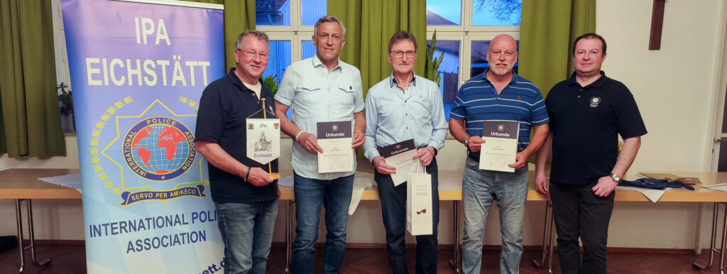 Im Anschluss an die Neuwahlen wurden Adolf Heger (2. v. links) und Robert Adelkofer (2. v. rechts) für 25 Jahre Mitgliedschaft und Uwe Hermannsdörfer (Mitte) für 50 Jahre Mitgliedschaft geehrt.