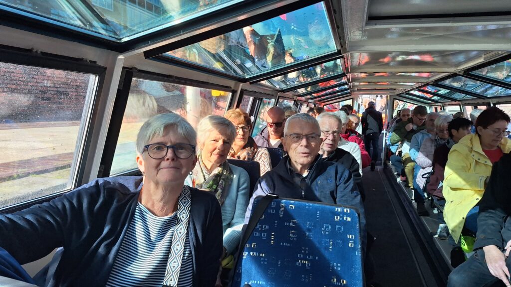Nach der Freizeit in Emden, die wir individuell verbringen konnten, gingen wir zur Anlegestelle und wurden zu einer Bootsfahrt durch Emdens Grachten eingeladen. Der Bootsbegleiter war ein super Entertainer. Er hat uns mit so viel Spaß und Anekdoten durch Emdens Wasserwege geführt. Wir kamen aus dem Lachen nicht raus.