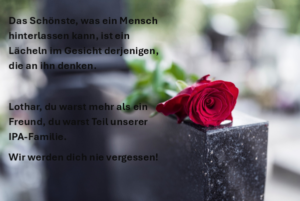Mit großer Bestürzung haben wir vom Tod unseres langjährigen IPA-Freundes und Verbindungsstellenleiters Lothar Bissel erfahren.