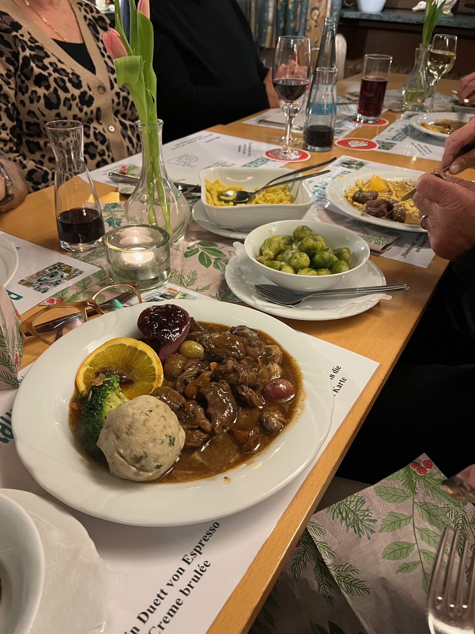 Nach einer zeitlichen Unterbrechung haben wir das über viele Jahre bei „Lotte“ im „Bahnhöfle“ in Staufen zelebrierte Wildessen wieder aufgenommen. Nachdem Lotte vor Jahren gestorben ist und ihr Enkel das Lokal unter anderen Voraussetzungen weiterführt, haben wir nun in der „Reblandklause“ in Pfaffenweiler, in der wir schon zweimal zur Schlachtplatte waren, eine neue „Heimat“ für unser traditionelles Wildessen gefunden.