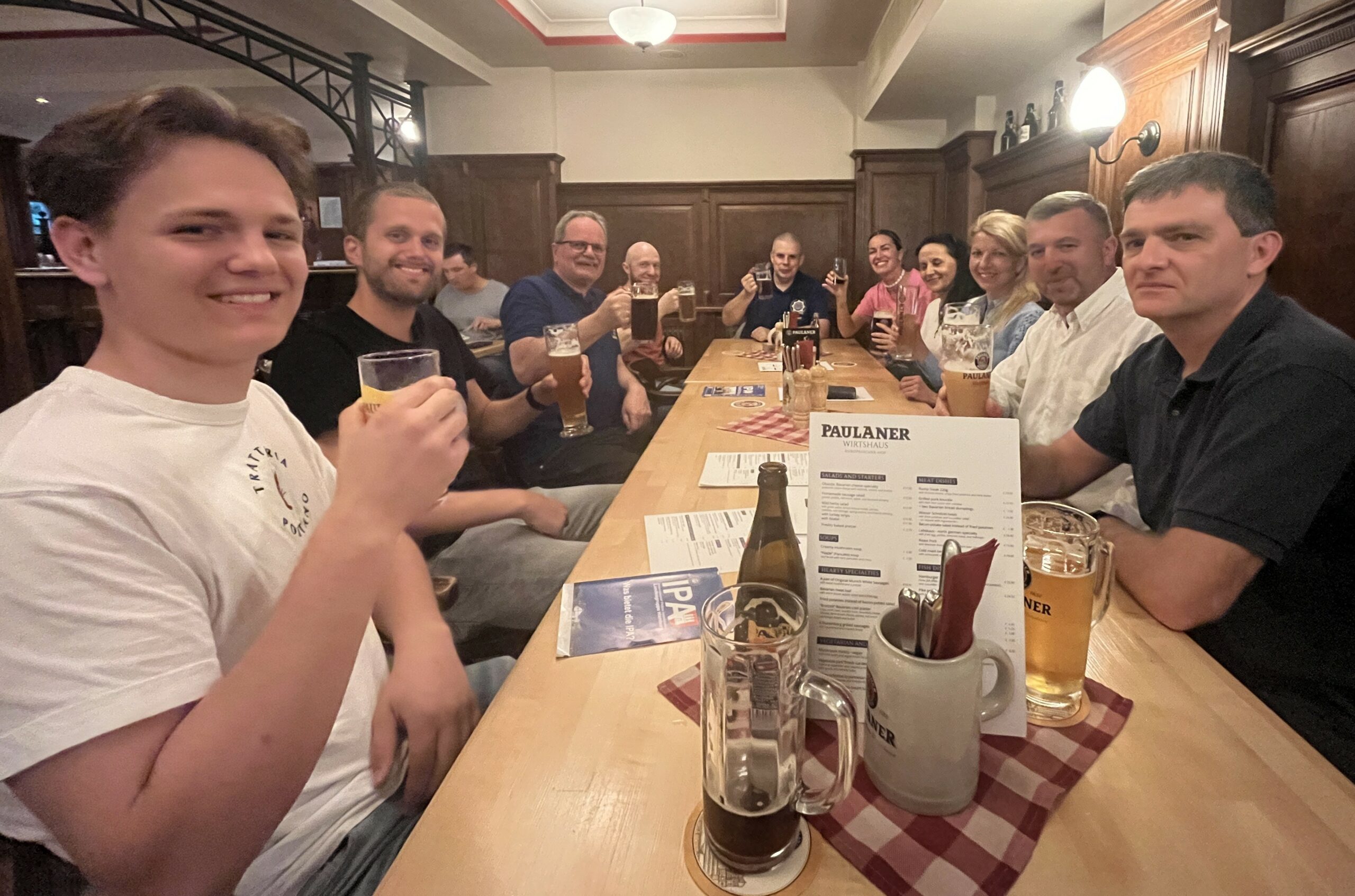 Am Montagabend organisierte ich zudem ein Begrüßungstreffen im Restaurant Paulaner´s am Hbf, an dem neben unseren beiden Hospitanten, noch Sibel Gaicki und Andre Köhler mit seinem polnisch sprechenden Praktikanten Paul Niemann, Mariana Raducu, Kai Wobith und mir noch vier weitere polnische Fachlehrer der höheren Polizeischule in Szczytno (Masuren) teilnahmen, welche eine zweiwöchige Hospitation an der AK absolvierten.