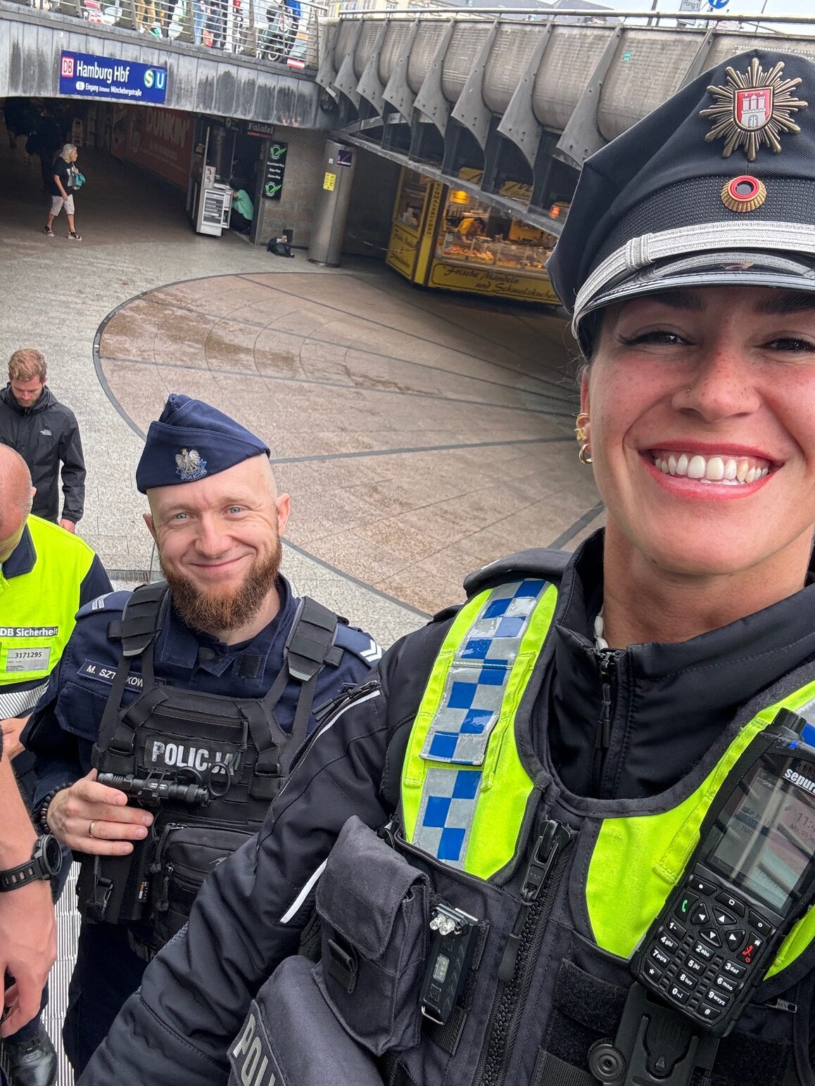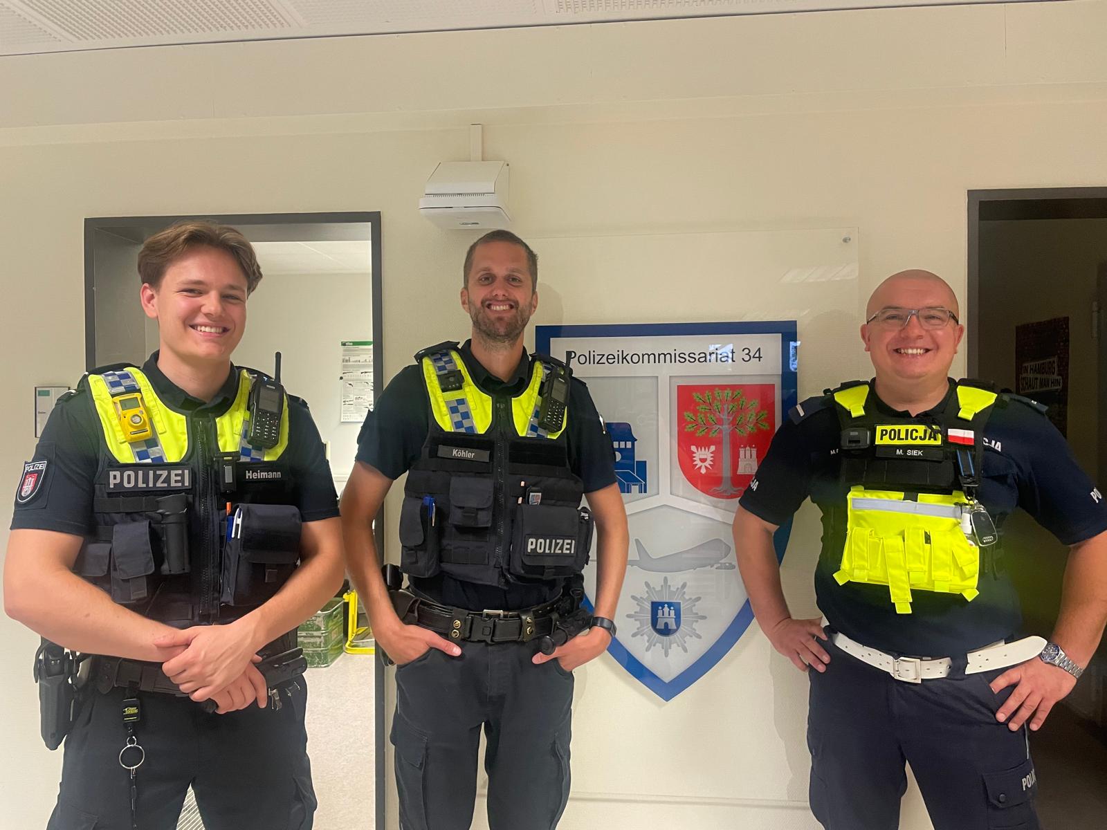 Andrzej durfte die nächsten drei Tage mit Sibel am PK 11 in verschiedene Bereiche, z.B. bei der Fußstreife am HBF, auf dem FuStw und bei den Drogenfahndern, Einblicke gewinnen und Michał wurde von André während der Streifenfahrten am PK 34 u.a. der Flughafen, das AK Ochsenzoll anlässlich eines Dienstunterrichtes, der Ohlsdorfer Friedhof und Santa Fu gezeigt.