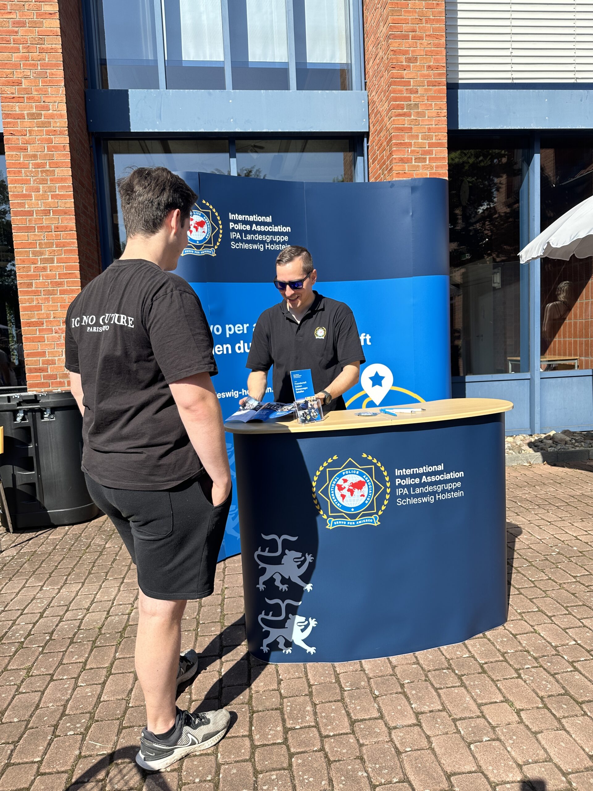 Im Rahmen des Informations- und Begegnungsforum an der Fachhochschule für Verwaltung und Dienstleistung (FHVD) am 6. August in Altenholz sowie an der Ausbildungsmesse der Polizeidirektion für Aus- und Fortbildung und für die Bereitschaftspolizei Schleswig-Holstein (PDAFB) am 27. August in Eutin war die IPA mit einem Informationsstand vertreten.