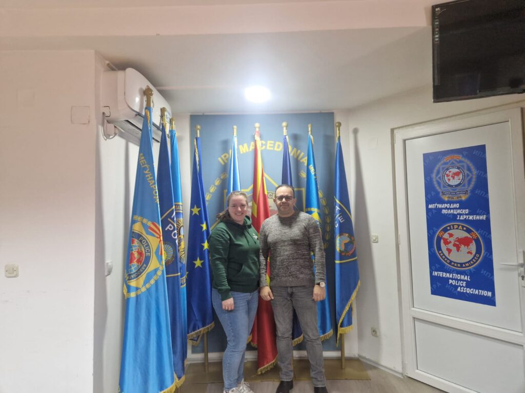 Die beiden Reisenden wurden herzlich im IPA-Büro empfangen. Spontan wurde ein Besuch bei einem örtlichen Polizeirevier organisiert, Patches ausgetauscht und zahlreiche Empfehlungen für Sehenswürdigkeiten ausgesprochen. Als der Wunsch aufkam, den Matka-Canyon zu besichtigen, zögerte Igor nicht lange und übernahm – trotz eigener Termine – persönlich die Fahrt dorthin.