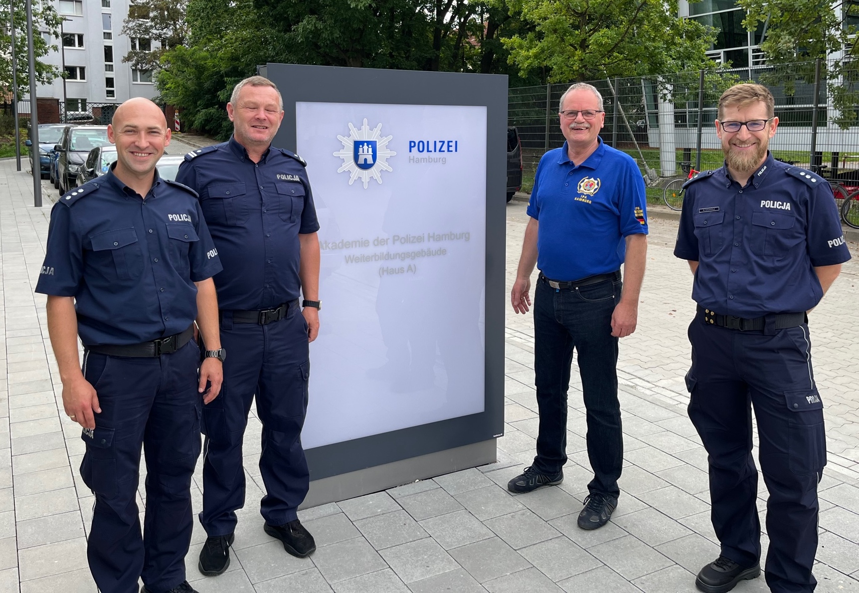 Am Begrüßungstag hatte mich unser Landesgruppenleiter, Kai Wobith, zu einem Vortrag der polnischen Kollegen über ihre Polizeiakademie in den neu gebauten Campus 3 unserer AK eingeladen. Wie sich herausstellte, ist die Ausbildung in Polen und Hamburg nicht grundlegend verschieden.