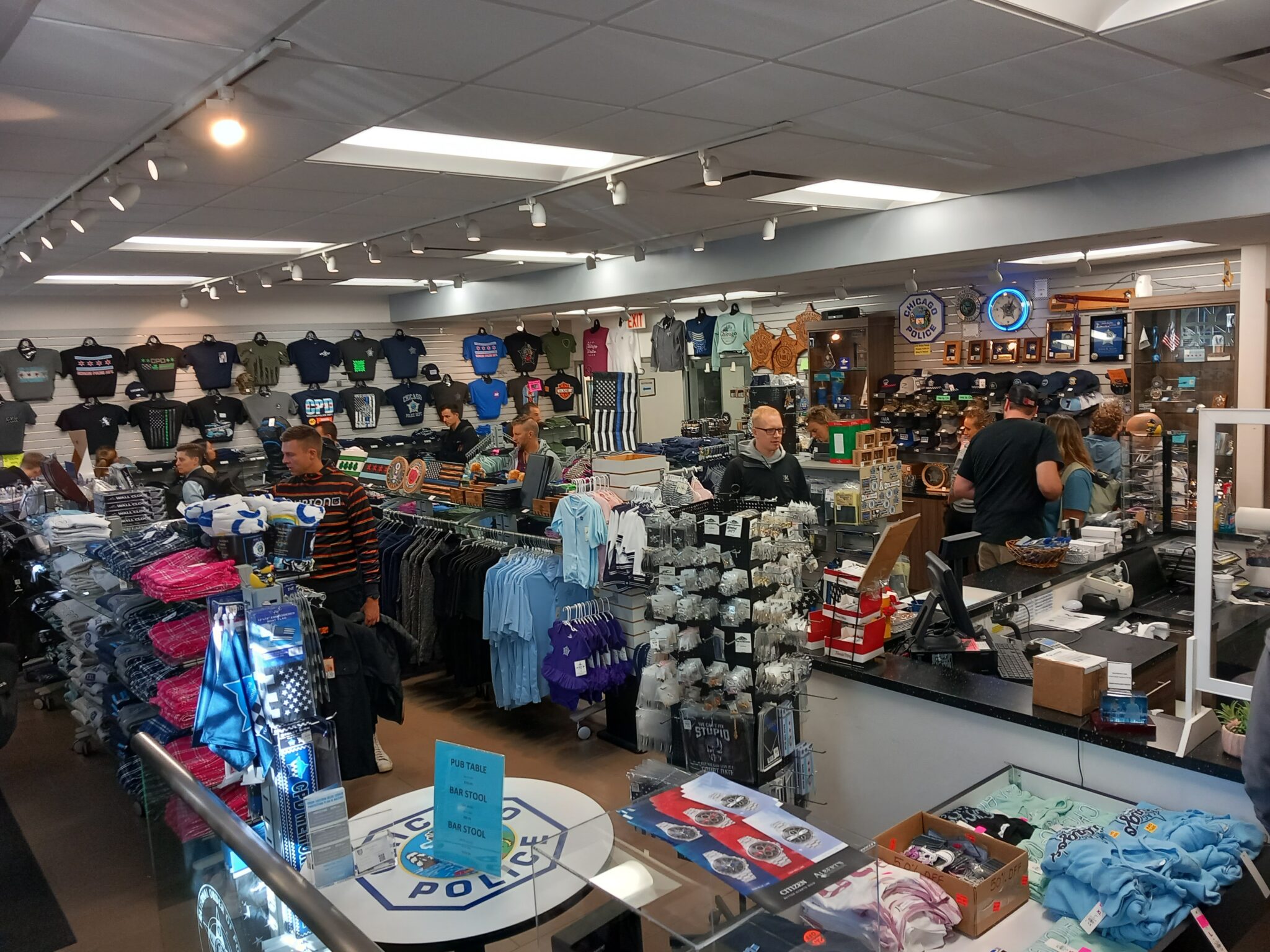 Nach der Academy fuhren wir etwa 10 Minuten bis zum nächsten Programmpunkt, dem Besuch des Polizei-Shops mit allerlei Kleidungsstücken wie T-Shirt, Jacken, Kappen, Pullis, Patches, Tassen und vielem anderen mehr. Es war interessant, dort zu stöbern und es wurde insgesamt von uns allen sehr viel gekauft.