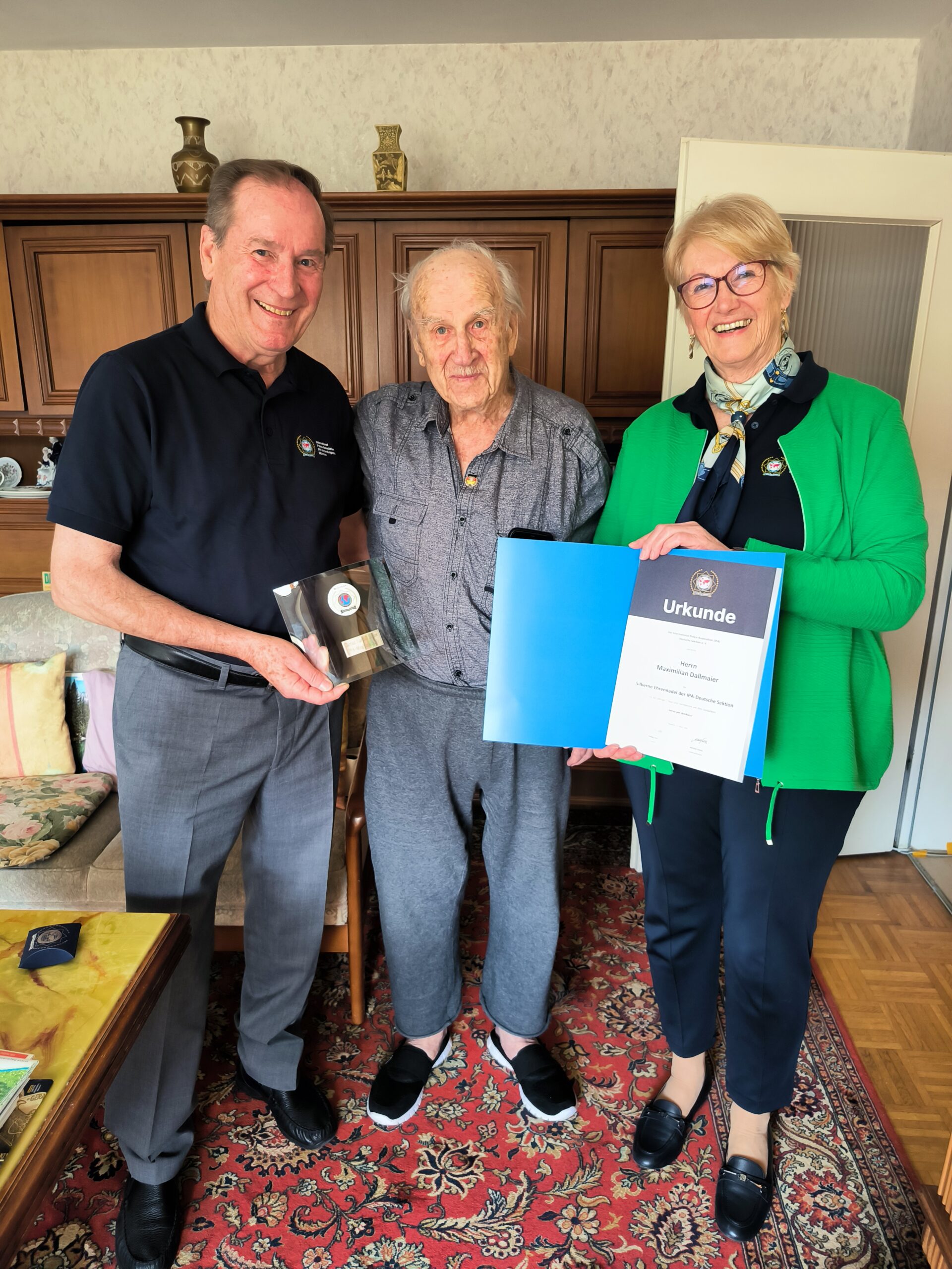 Mit 99,5 Jahren ist Maximilian Dallmaier ein lebendiges Stück IPA-Geschichte. Als Weggefährte von IPA-Gründer Arthur Troop und Ehrenmitglied der IPA Deutschland blickt er auf eine beeindruckende 60-jährige Mitgliedschaft in der IPA München zurück. Bei einem Besuch ehrten ihn Ingrid Fischer (Sekretärin IPA München) und Erich Pauli (Schatzmeister IPA München) für sein lebenslanges Engagement.