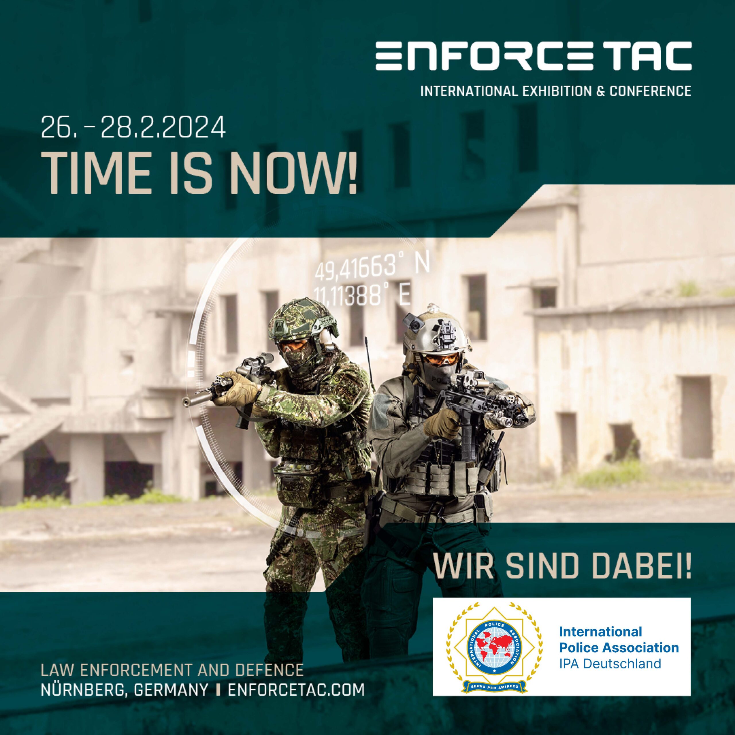 Wenn es um Sicherheit und Einsatzbereitschaft unserer Kolleginnen und Kollegen geht, ist die beste Ausrüstung gerade gut genug. In diesem Jahr wird die IPA Deutschland (www.ipa-deutschland.de) gemeinsam mit dem IBZ Schloss Gimborn (www.ibz-gimborn.de) zum zweiten Mal mit einem Messestand auf der Messe Enforce Tac vom 26. bis 28. Februar in Nürnberg vertreten und ansprechbar sein.