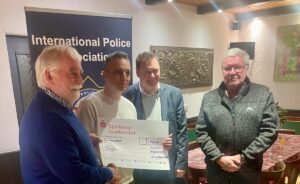 Am Freitag, dem 06.02.2026, 14:00 Uhr, hat die International Police Association (IPA) Verbindungsstelle Würzburg e .V., der Würzburger Kindertafel e.V. einen symbolischen Scheck (eine Überweisung des