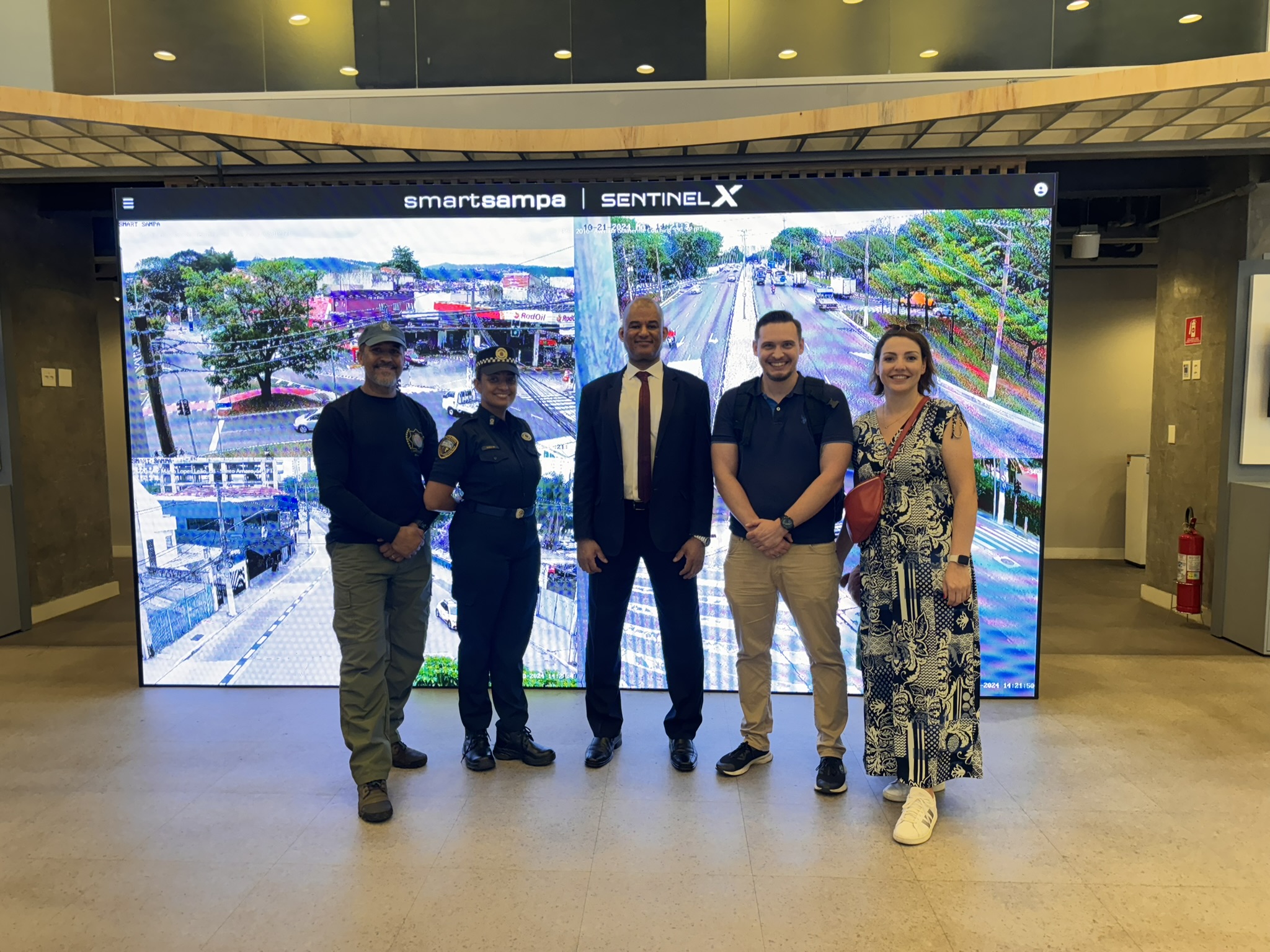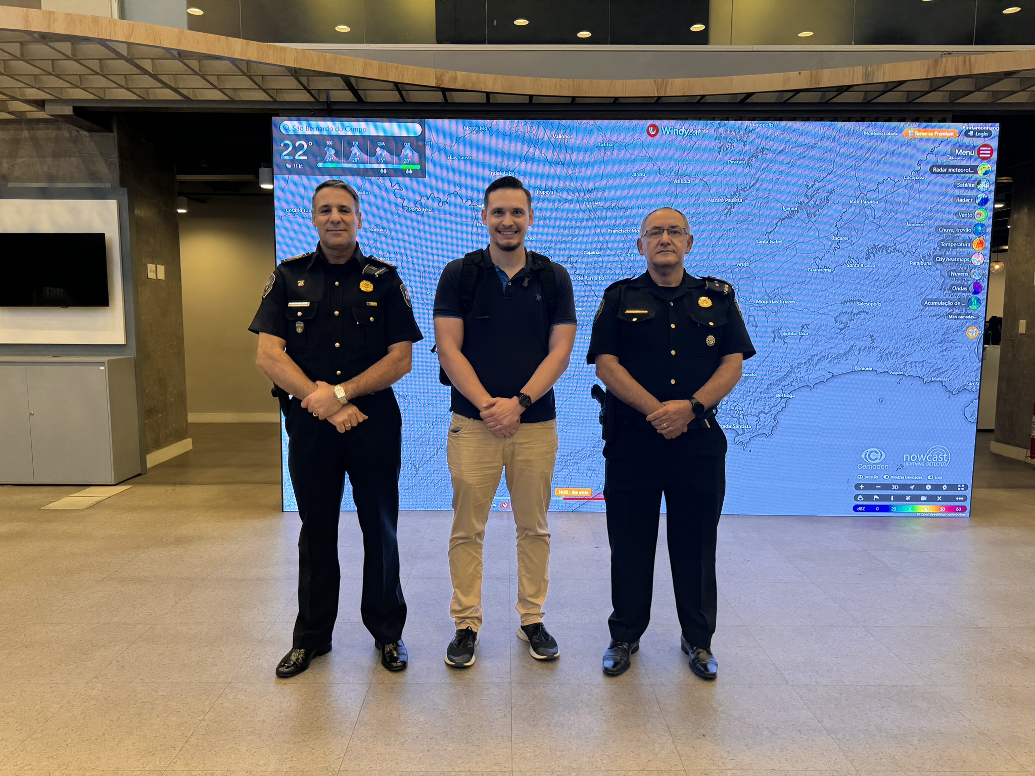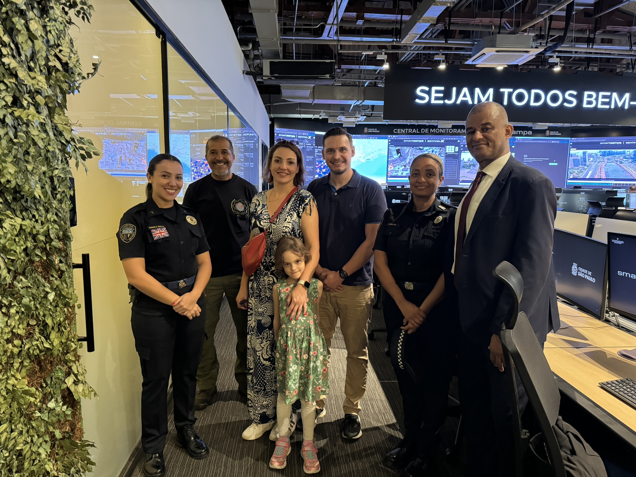 Im Oktober 2024 war es soweit. Am Tag unseres Treffens holten mich Almir und Daniela mit dem Motorrad unterwegs ab und begleiteten mich ins Zentrum von São Paulo, einer beeindruckenden Megacity mit rund 11,9 Millionen Einwohnern. Unsere erste Station war das Hauptquartier der Guarda Civil Metropolitana. Dort durfte ich die kürzlich eröffnete, hochmoderne Kommandozentrale besichtigen. Hier laufen u. a. die Aufnahmen von über 18.000 Überwachungskameras aus der ganzen Stadt zusammen, ein System, das nicht nur modern, sondern auch leistungsstark ist: Mithilfe automatischer Gesichtserkennung werden Bilder von gesuchten Kriminellen und vermissten Personen im gesamten Stadtgebiet identifiziert. Inzwischen hat sich auch uns Dr. Marcal Honda, Präsident der IPA São Paulo, angeschlossen.