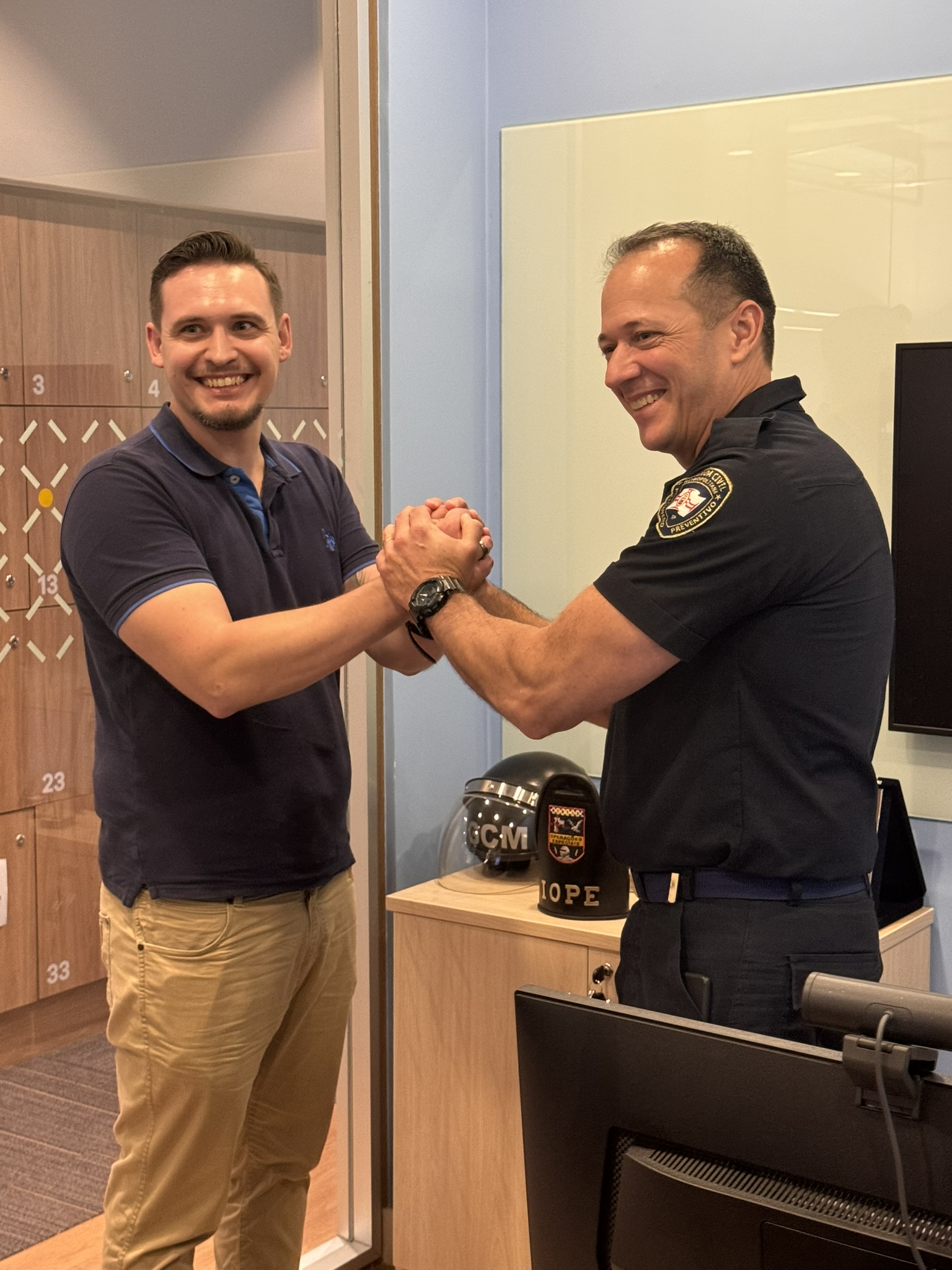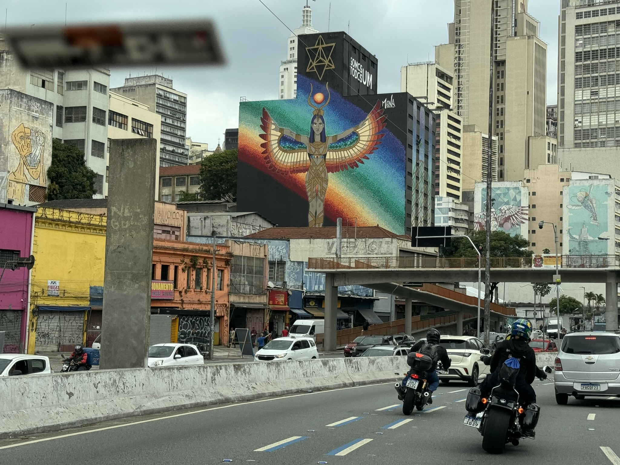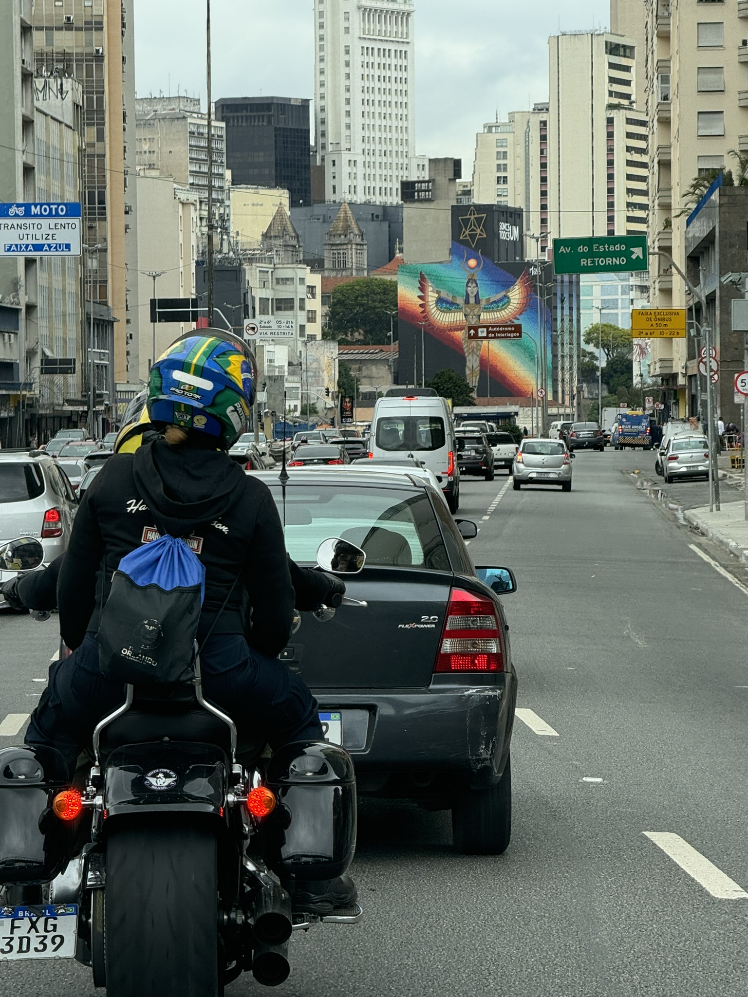 Im Oktober 2024 war es soweit. Am Tag unseres Treffens holten mich Almir und Daniela mit dem Motorrad unterwegs ab und begleiteten mich ins Zentrum von São Paulo, einer beeindruckenden Megacity mit rund 11,9 Millionen Einwohnern. Unsere erste Station war das Hauptquartier der Guarda Civil Metropolitana. Dort durfte ich die kürzlich eröffnete, hochmoderne Kommandozentrale besichtigen. Hier laufen u. a. die Aufnahmen von über 18.000 Überwachungskameras aus der ganzen Stadt zusammen, ein System, das nicht nur modern, sondern auch leistungsstark ist: Mithilfe automatischer Gesichtserkennung werden Bilder von gesuchten Kriminellen und vermissten Personen im gesamten Stadtgebiet identifiziert. Inzwischen hat sich auch uns Dr. Marcal Honda, Präsident der IPA São Paulo, angeschlossen.