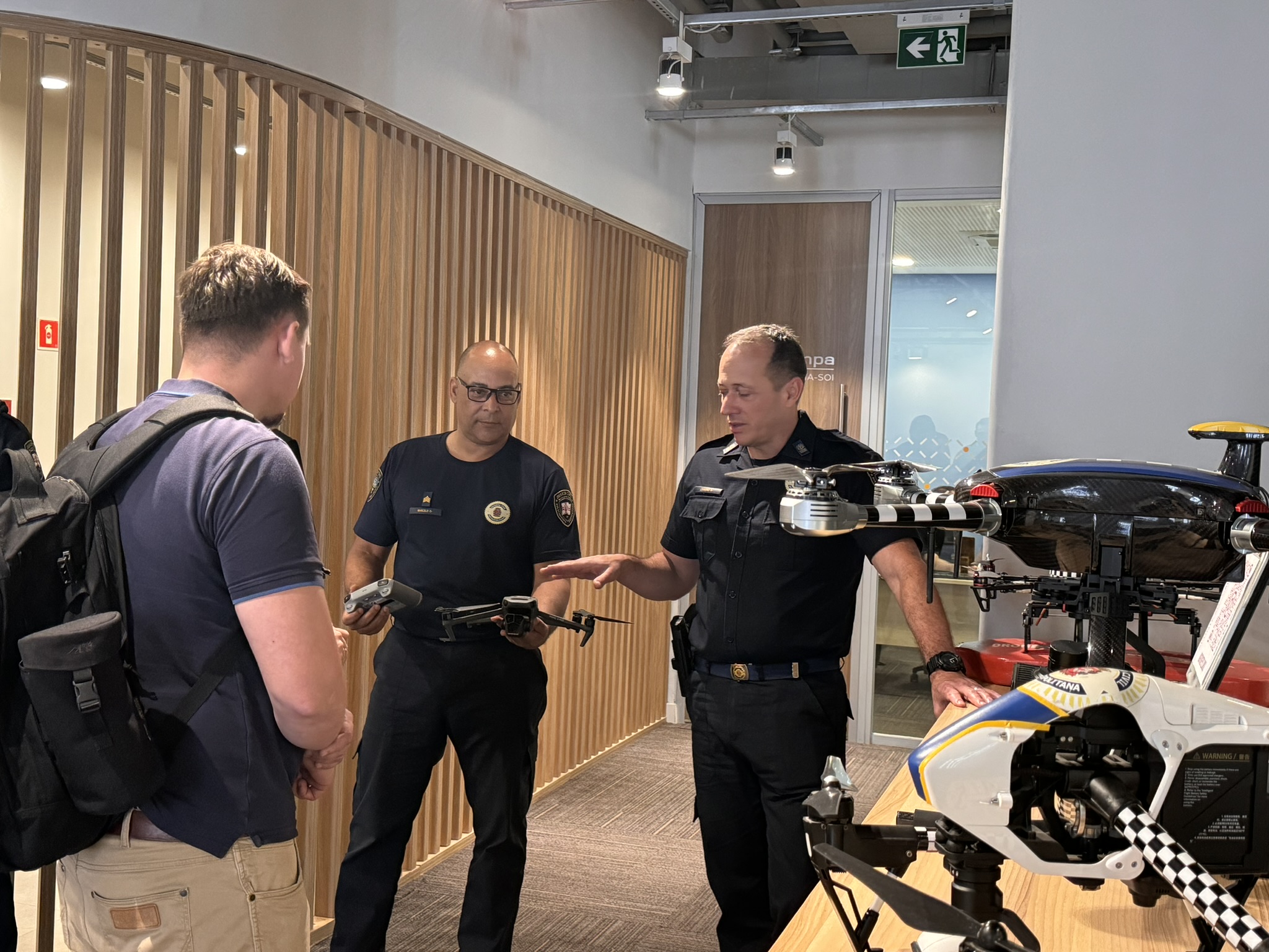 Nach dieser eindrucksvollen Einführung wurde mir auch die Drohnenstaffel vorgestellt. São Paulo setzt schon seit einiger Zeit Drohnen für Aufklärungszwecke und die Wasserrettung ein. Ein besonderes Highlight war die Vorführung des Roboterhundes, der speziell für Einsätze in schwer zugänglichen Gassen und Gebieten entwickelt wurde.