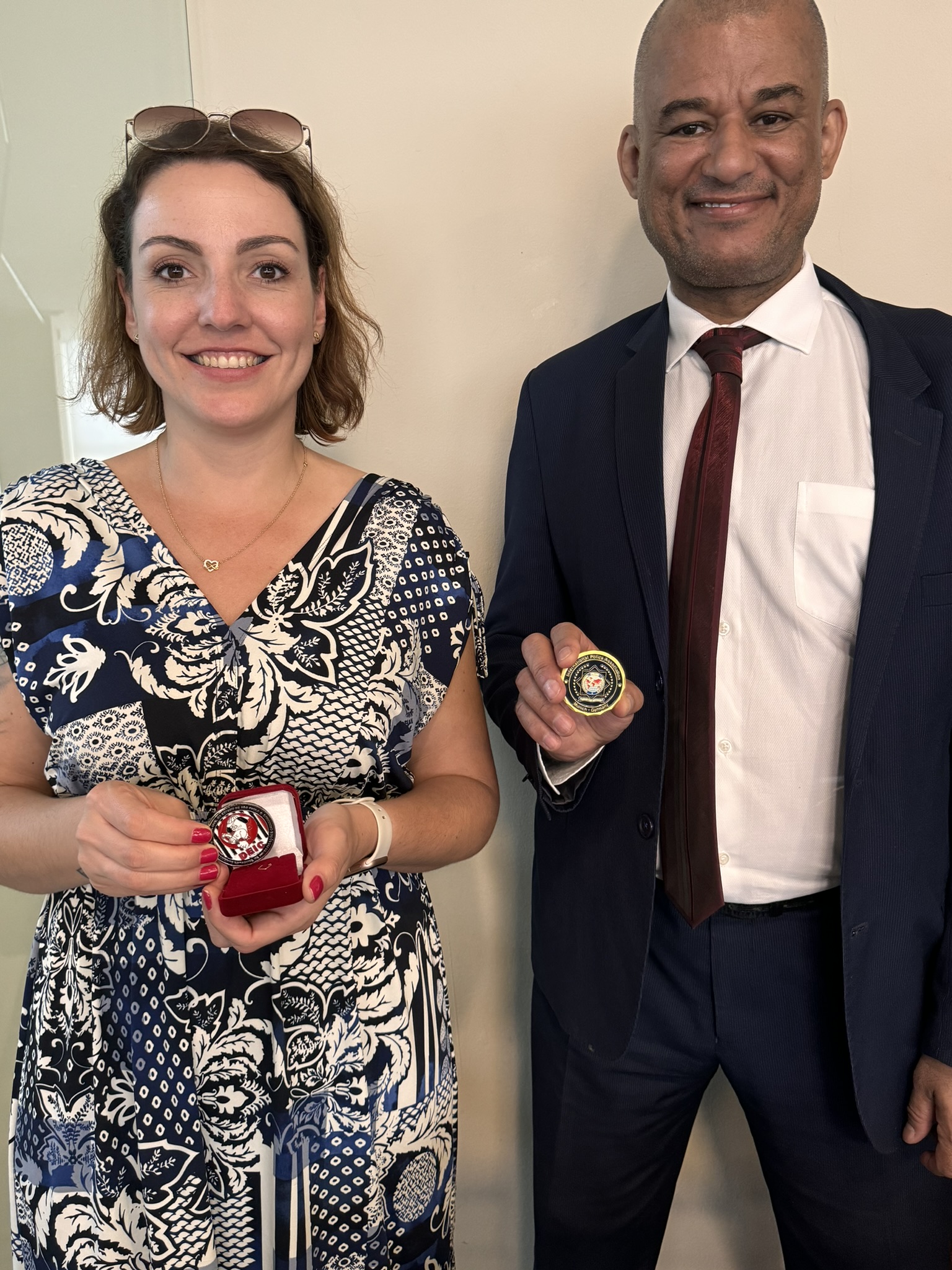 Bild 3.8 – 3.9: Inspetor de Divisão Leandro Ramalho, Leiter der Drohnenstaffel überreicht mir in seinem Büro einen Coin als Geschenk